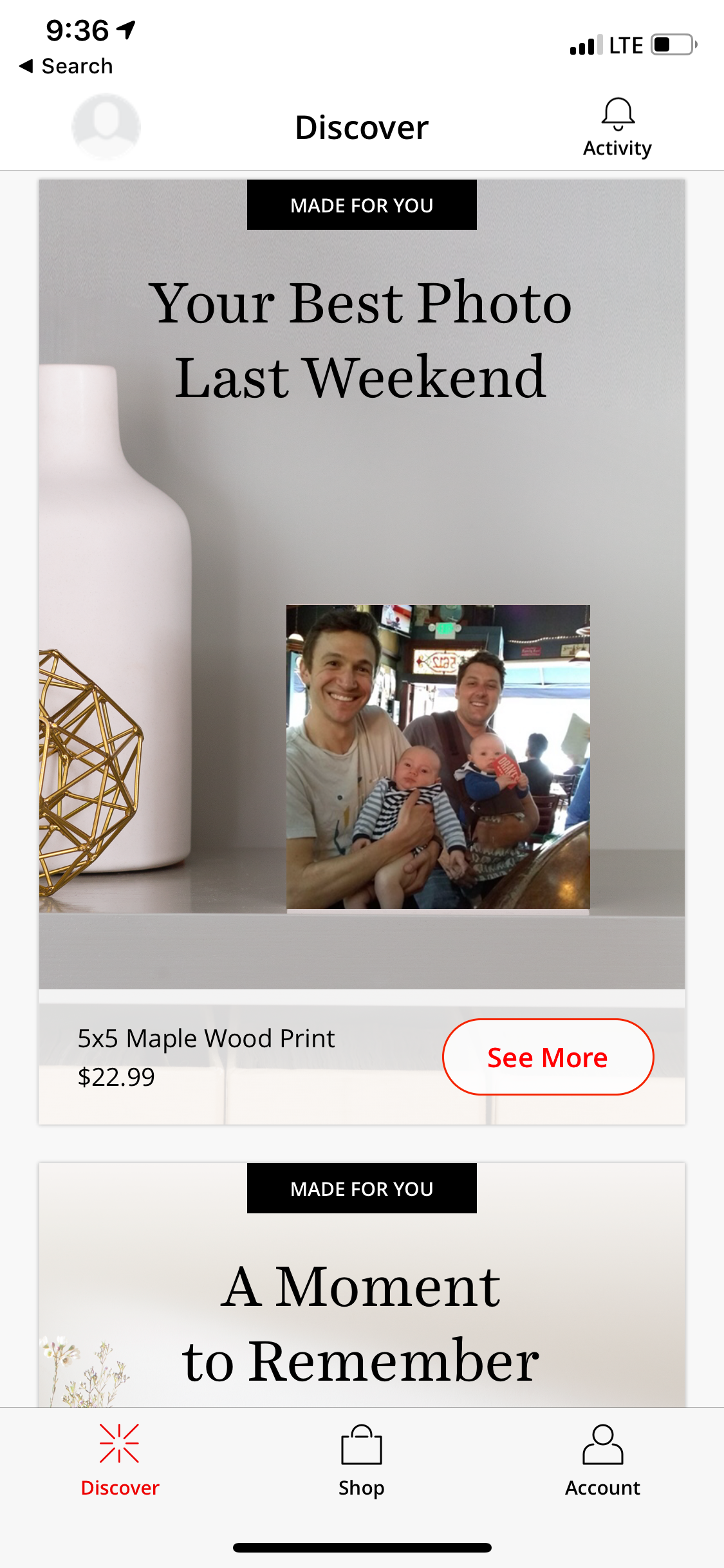 We live, and take photos of, great moments all the time, but too often they get lost in our camera rolls. We redesigned and rebuilt the Kodak Moments App around an experience we called "Made For You" that intelligently surfaced great photos from your camera roll and put them into Kodak products that might interest you.